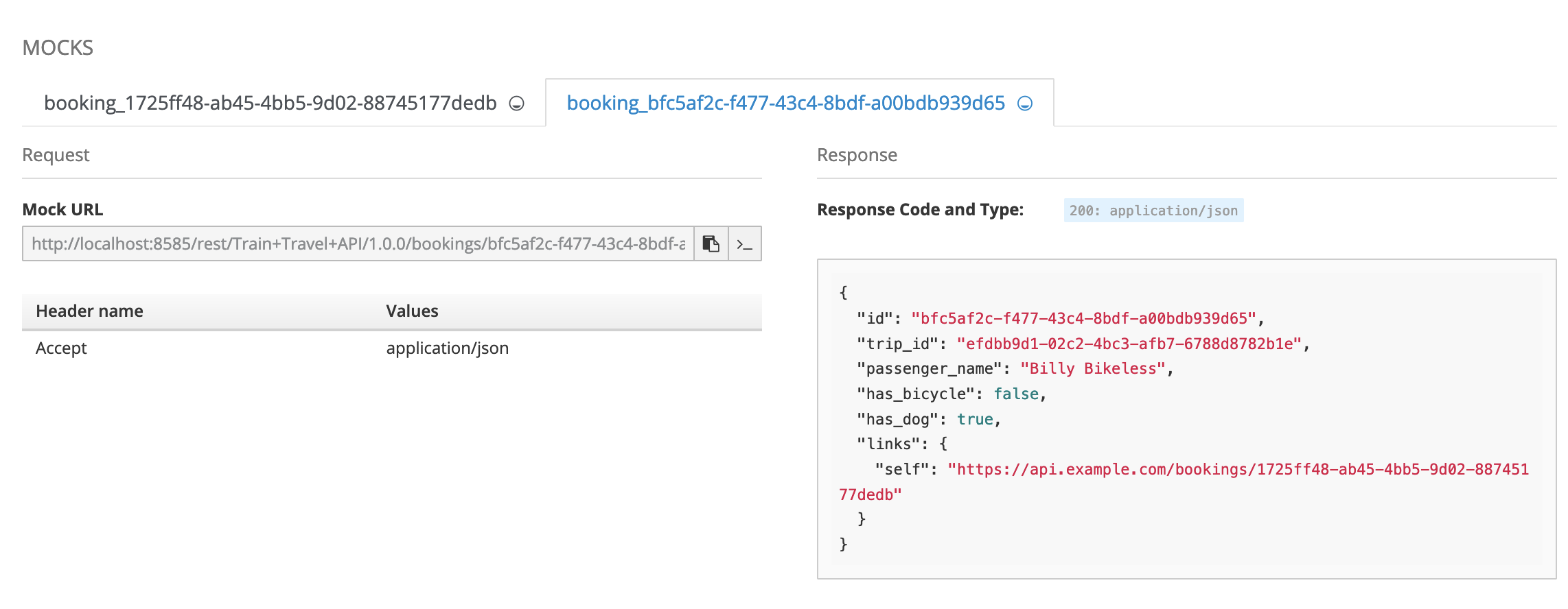 Now you can call either of them, and get different HTTP responses with the appropriate example data being used for each.