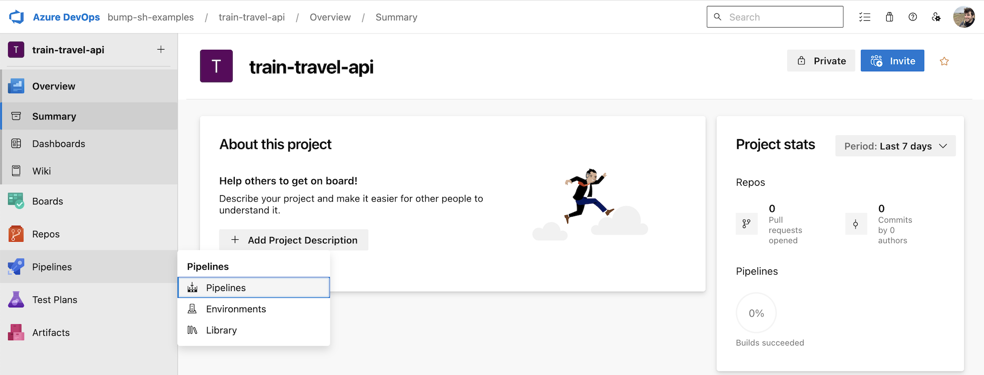 Azure DevOps has a feature called “Pipelines”, which allow you to chain together various actions for Continuous Integration & Continuous Delivery. In this tutorial we’ll show you how to create a pipeline, and use it to deploy your Bump.sh API documentation when new commits are pushed to your main Git branch, and show how to check for breaking changes on pull requests.