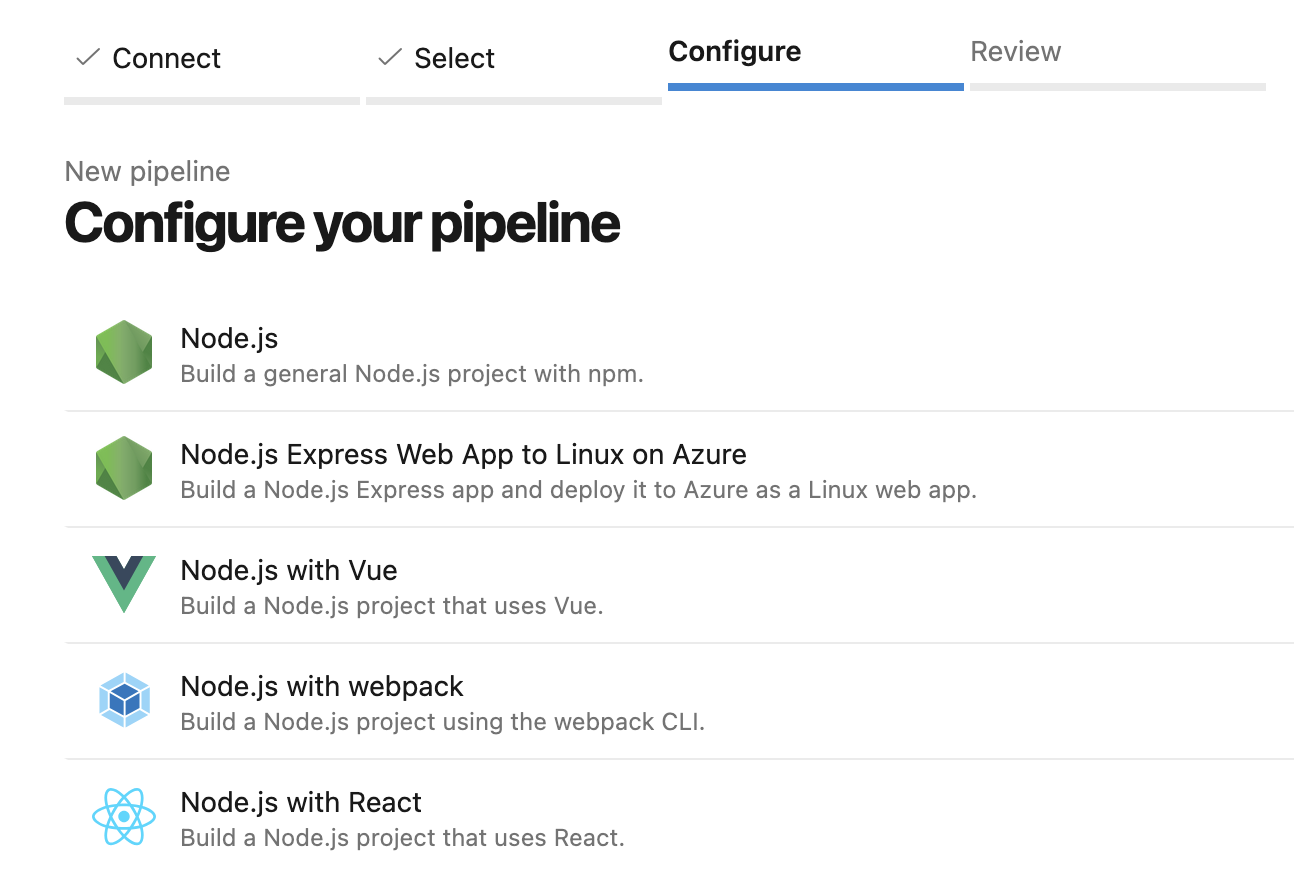 Then you’ll be presented with lots of options for start templates. Click “Node.js” because Bump.sh CLI is built with Node.
