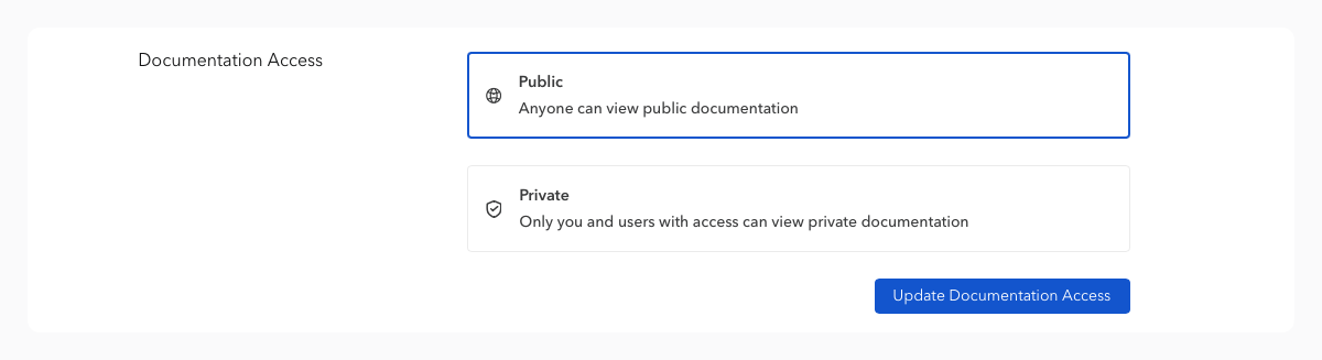 Bump.sh allows you to choose whether documentation is public or private.